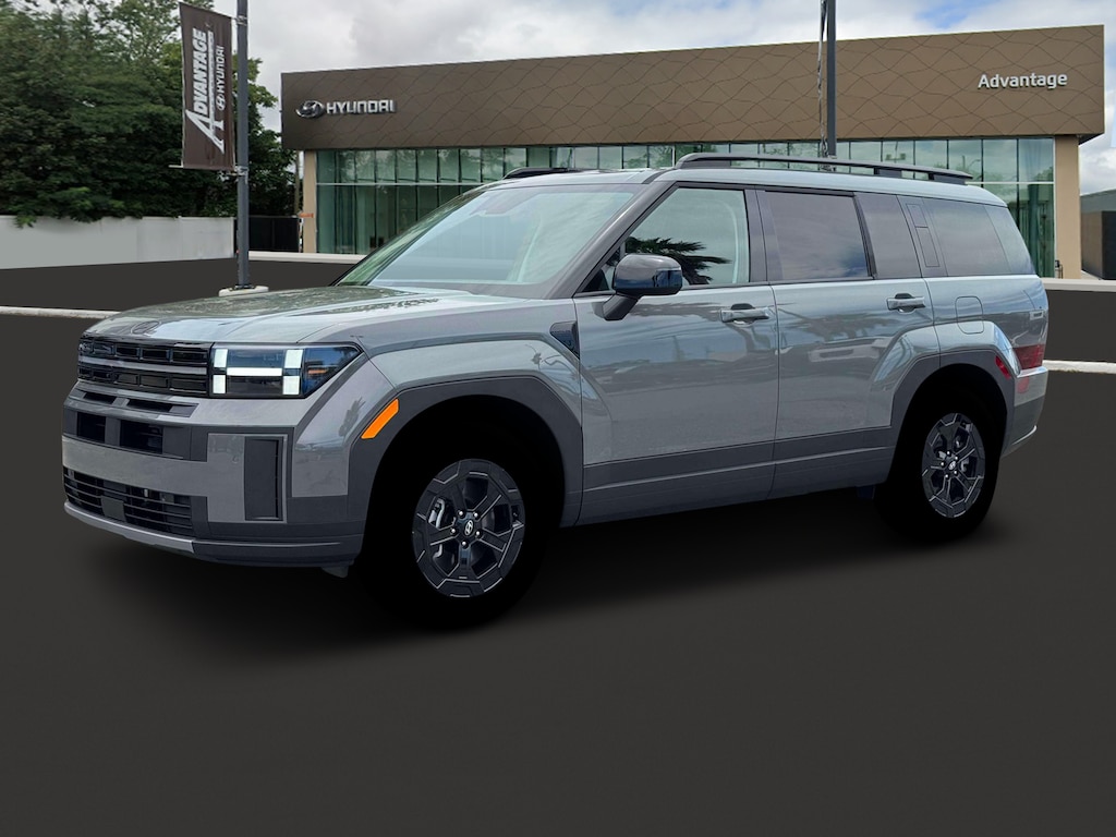 Gray 2026 Hyundai Santa Fe XRT AWD 8-Speed Automatic with SHIFTRONIC 2.5L I4 AWD, Black Premium Synthetic.